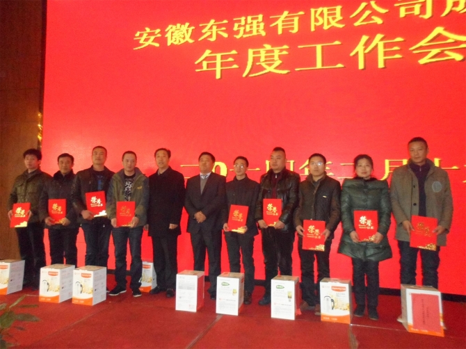 一元復(fù)始,萬象更新。為認(rèn)真總結(jié)和回顧2013年度各項工作,并對2014年的生產(chǎn)經(jīng)營管理提出明確的目標(biāo)任務(wù)和計劃。表彰先進(jìn),提升士氣,充分凝聚企業(yè)團(tuán)隊的智慧和力量,以良好的團(tuán)隊精神、團(tuán)隊能力和團(tuán)隊業(yè)績,確保2014年各項目標(biāo)任務(wù)的圓滿完成和企業(yè)的長遠(yuǎn)發(fā)展,2014年2月19日,公司在合肥同慶樓花園酒店召開了年度工作會議。出席會議的有公司領(lǐng)導(dǎo),安徽東強、西站、鯤翼商貿(mào)全體員工,蕪湖康特、蕪湖東強、六安宏順、六安鯤鵬、六安東升中層以上管理者、獲獎人員及五年以上員工。