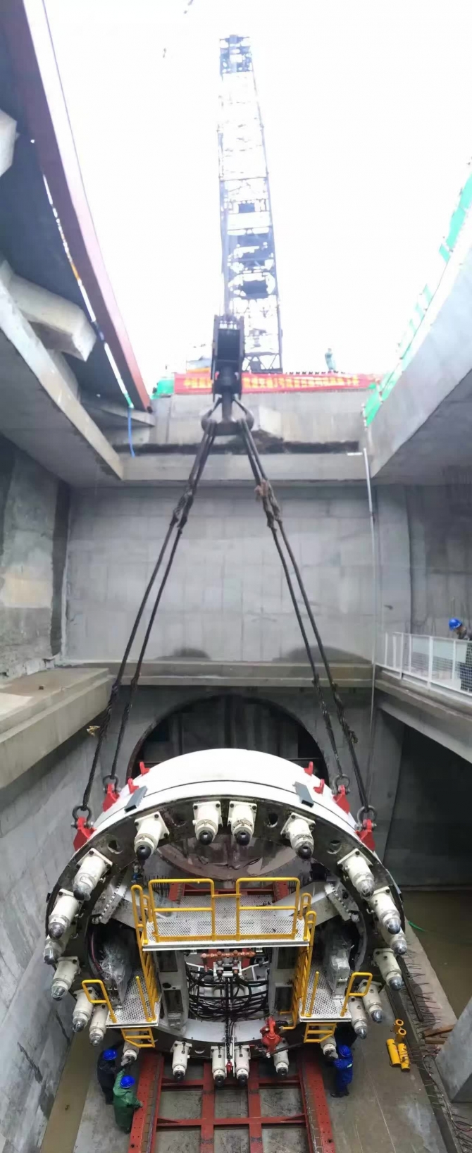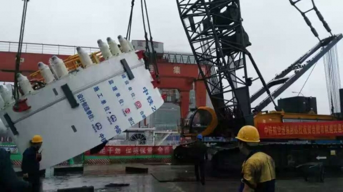 下圖為3-08標(biāo)盾構(gòu)機下井。