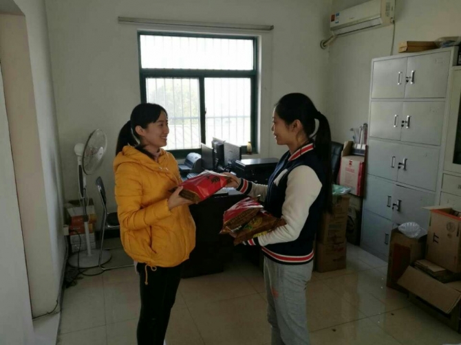 辦公室人員給經(jīng)營部人員派發(fā)福利!